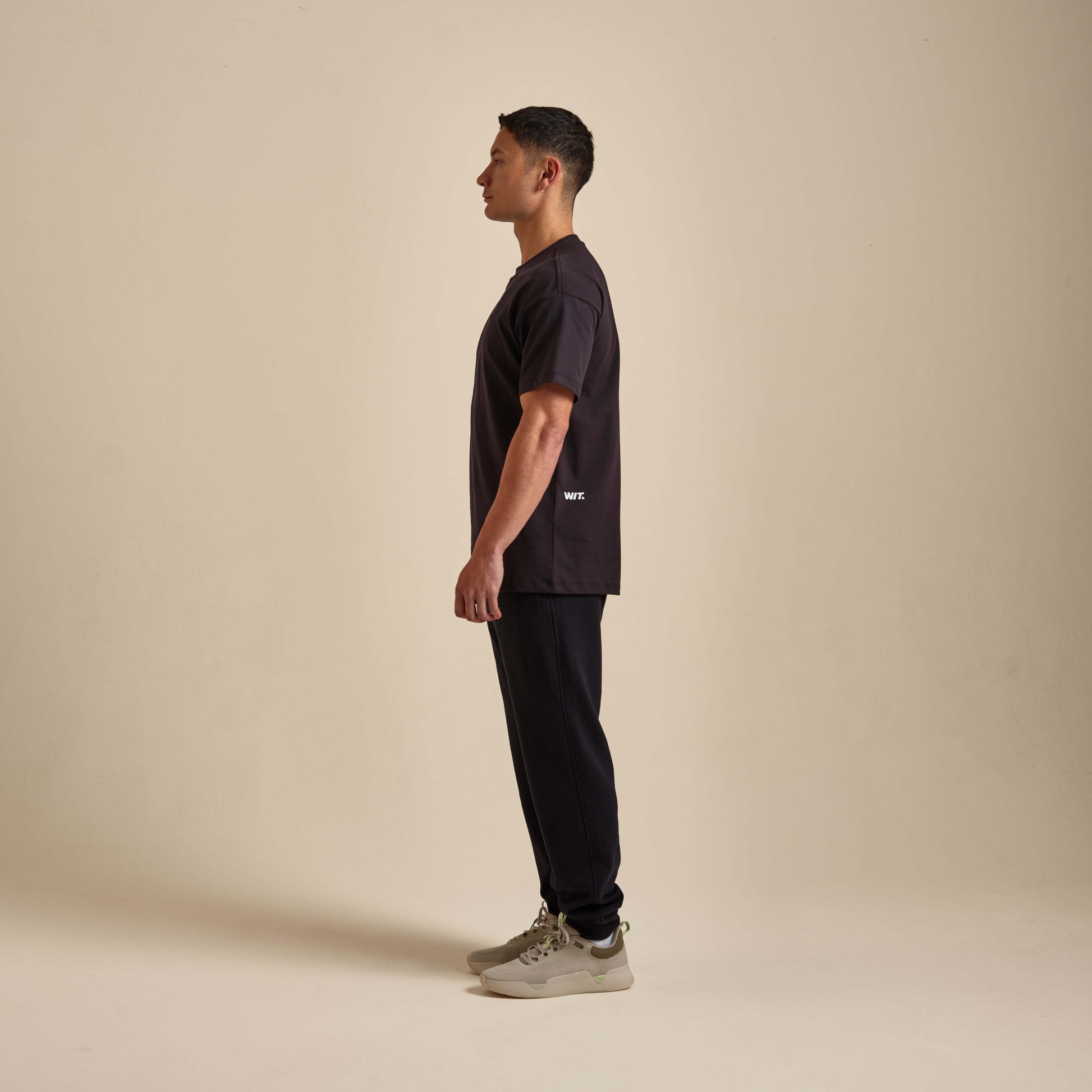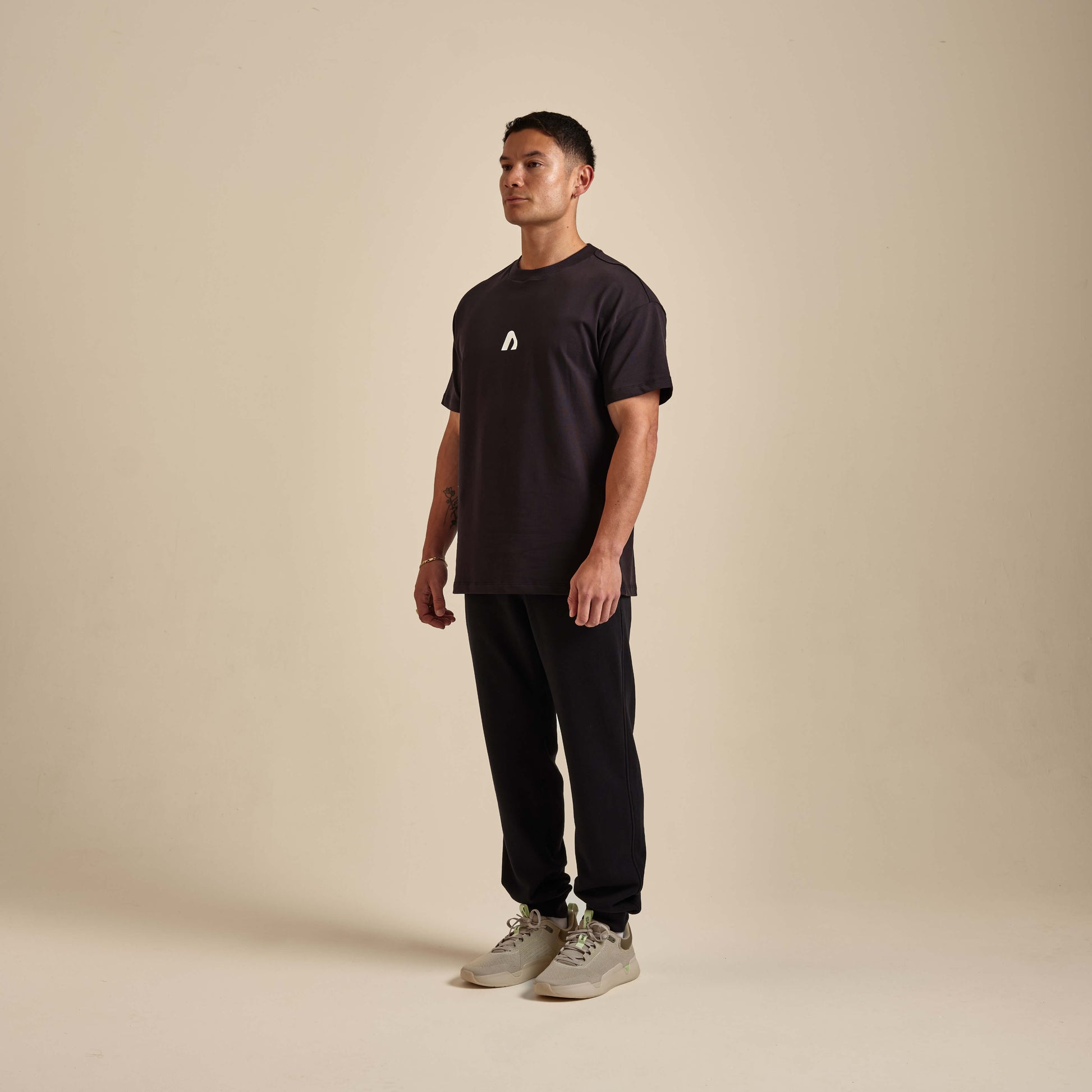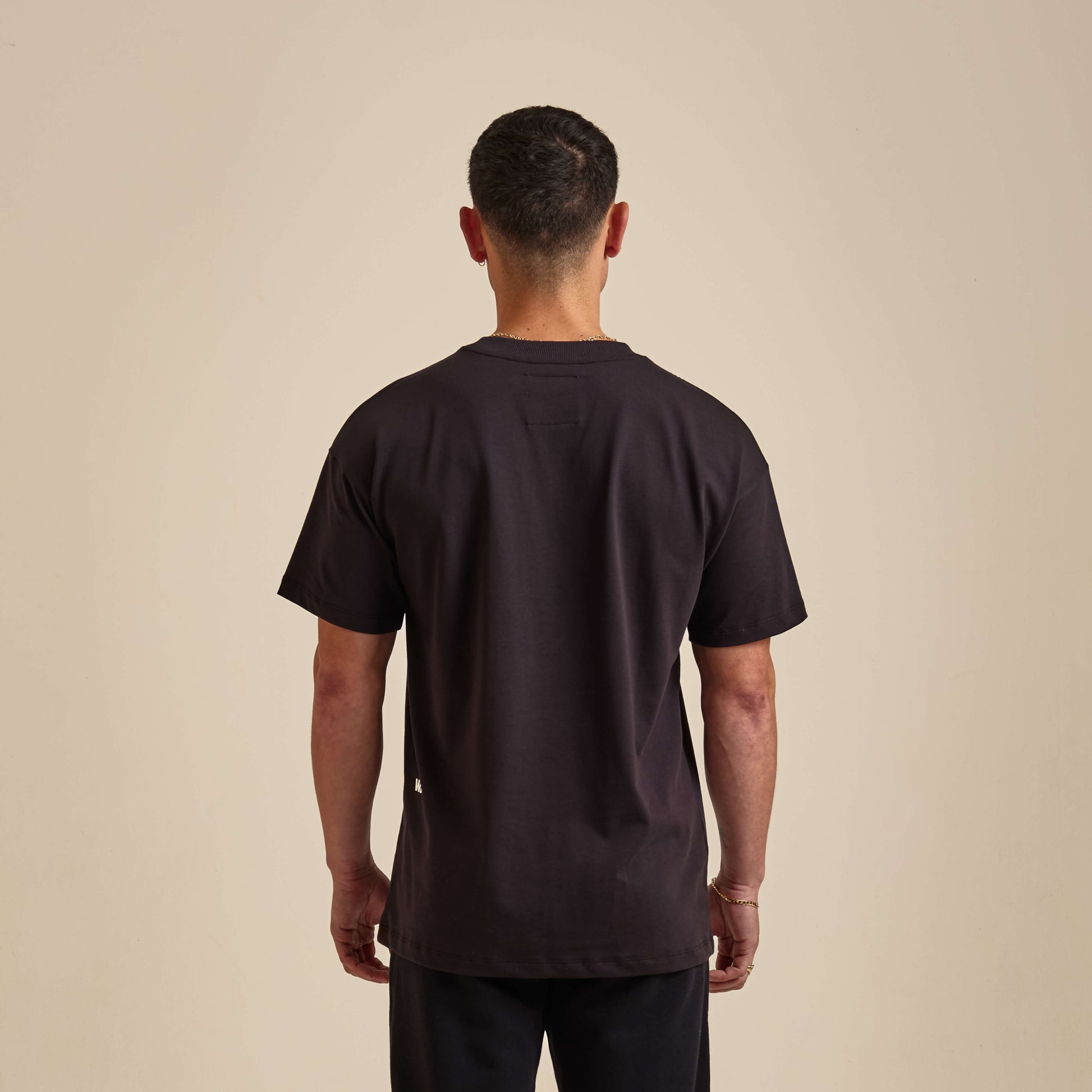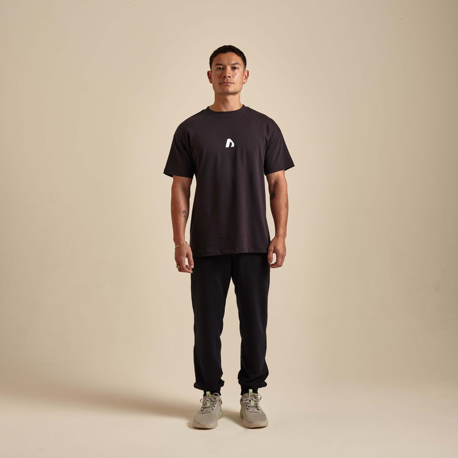 Una camiseta de corte holgado con un estilo relajado y la runa ubicada en el centro del pecho.